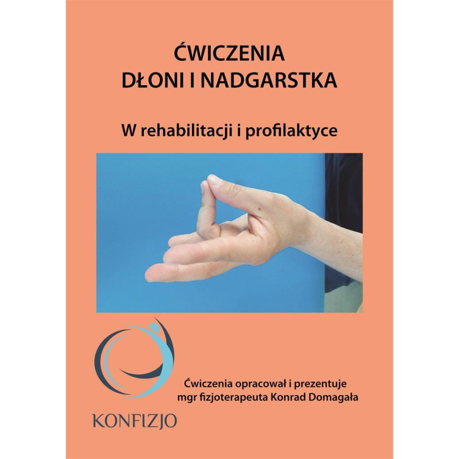 Książka - poradnik ćwiczenia dłoni i nadgarstka, zawiera zbiór ponad 60 ćwiczeń. Ćwiczenia zostały przedstawione na fotografiach oraz opisane. Dłoń i nadgarstek ze względu na swoją precyzję, a także podleganie różnorodnym obciążeniom, są narażone na urazy, przeciążenia, zmęczenie. Niezależnie od rodzaju obciążeń dnia codziennego, ćwiczenia mogą stanowić działanie profilaktyczne w celu zapobiegania przeciążeniom oraz kontuzjom nadgarstka i dłoni lub mogą być elementem leczenia rehabilitacyjnego w przypadku już istniejących problemów. Ćwiczenia dłoni i nadgarstka to 8 z serii poradników rehabilitacyjnych wydany przez czynnego zawodowo fizjoterapeutę.