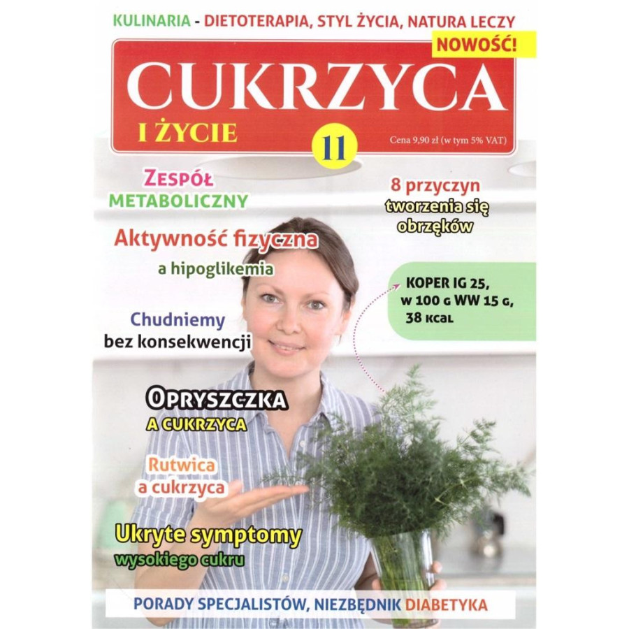 W numerze 11-tym mogą się Państwo zapoznać z wiedzą na takie tematy jak: Niedoczynność tarczycy a cukrzyca, zależność mózgu od glukozy, zespół metaboliczny a rozwój cukrzycy typu 2-go, przyczyny tworzenia się obrzęków, spożywanie owoców a cukrzyca, ukryte symptomy wysokiego poziomu cukru, czy też stałą rubrykę: diety i przepisy kulinarne dla diabetyka.