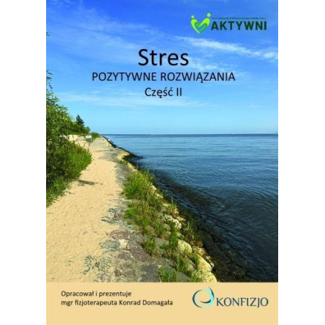 Poradnik zawiera skuteczne sposoby radzenia ze stresem, rozluźniania, zmniejszania napięcia. Redukcja codziennego, nadmiernego poziomu stresu ma pozytywne skutki dla naszego zdrowia. Poradnik ze względu na dużą szerokość tematu radzenia sobie ze stresem i napięciem, został wydany w dwóch częściach. Część druga poradnika zawiera: Rozluźniające i relaksacyjne pozycje ułożeniowe Rozluźnianie i relaksacja poprzez docisk - kompresję Przyrządy i gadżety do automasażu, rozluźniania i relaksacji Rozluźnianie poprzez ćwiczenia rozciągające w połączeniu z oddychaniem Terapia lasem Ruch a stres Muzykoterapia Sen a stres Koloroterapia Dieta a stres Humor i optymizm a stres Łączenie różnych technik relaksacyjnych Wszystkie techniki i ćwiczenia zawierają wyczerpujący opis o ich działania oraz wpływu na organizm, a także dokładny opis ich wykonania. Wzbogacone zostały o szczegółowe fotografie. Dobór odpowiednich sposobów radzenia sobie ze stresem i napięciem pomaga w znacznym poprawie zdrowia. 10% dochodu ze sprzedaży poradnika jest przekazywane na wsparcie Kluczborskiego Stowarzyszenia Rehabilitacji Aktywni, które zajmuje się profilaktyką zdrowotną, zapobieganiem występowania bólu i kontuzjom pleców i stawów oraz wsparciem rehabilitacji.