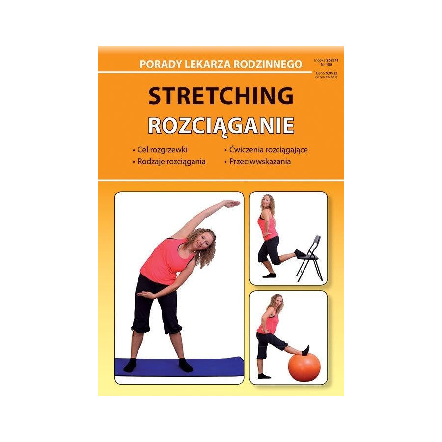 Poznaj zalety stretchingu. W poradniku znajdziesz przykładowe zestawy codziennych ćwiczeń rozciągających, praktyczne wskazówki trenera, wskazania i przeciwwskazania.