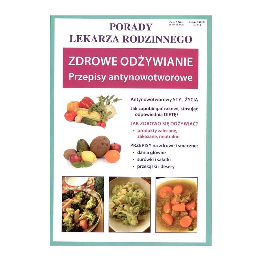 Poznaj leczniczą moc jedzenia. W tym poradniku znajdziesz praktyczne rady, jak zdrowo się odżywiać i zapobiegać rakowi, stosując odpowiednią dietę, zasady antynowotworowego stylu życia, a także przepisy na smaczne i zdrowe dania główne, surówki i sałatki, przekąski i desery.