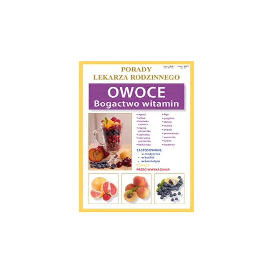 W tym poradniku znajdziesz szczegółowy opis owoców krajowych i egzotycznych oraz dowiesz się, jakie bogactwo witamin, składników mineralnych, błonnika pokarmowego i związków bioaktywnych znajduje się w borówkach, czereśniach, morelach, pomarańczach, wiśniach, porzeczkach i innych owocach. Książka opisuje właściwości lecznicze owoców, a także podpowiada, jak wykorzystać je w kuchni i do sporządzenia naturalnych kosmetyków. Znajdziesz tu inspiracje do komponowania posiłków tak, aby były smaczne i zdrowe.