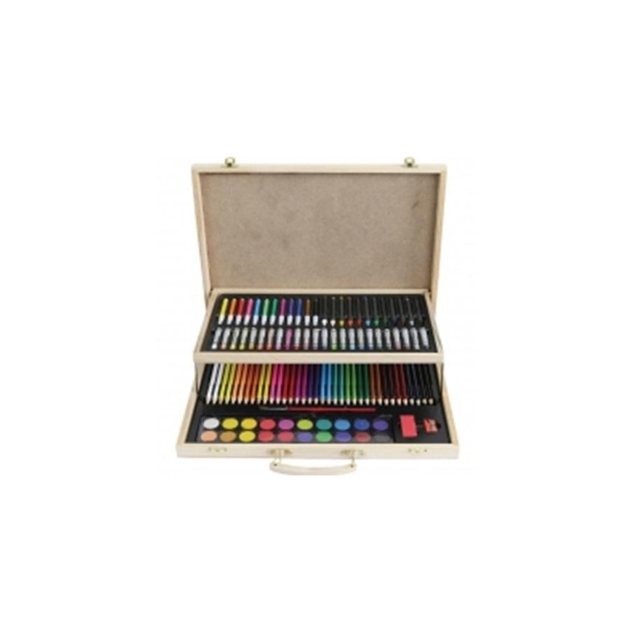 Zestaw artystycznyto doskonały początek przygody młodego artysty. Komplet jest funkcjonalny i składa się łącznie z108 praktycznych elementów.Mnogość przyborów sprawi, że każde użyciezestawu artystycznego będzie doskonałą podróżą w świat sztuki.W skład zestawu wchodzą 24 pastele olejne, 12 mini flamastry, 12 kredek świecowych, 20 kolorów farbek akwarelowych, 36 kredek, pędzelek, gumka, temperówki, paletka. Wykonane z najwyższej jakości materiałów przybory mają szeroką gamę kolorystyczną, co dodatkowo ułatwi wykonywanie prac plastycznych czy codzienny użytek. Całość została umieszczona w eleganckiej i praktycznej walizce, ułatwiającej przenoszenie i dodatkowo podbijającej walory estetyczne całego zestawu. Zestaw do malowania i rysowania to nie tylko obowiązkowy element wyposażenia każdego ucznia czy miłośnika kreatywnych zadań, ale także doskonały pomysł na prezent.