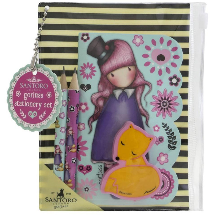 Mały Zestaw przyborów szkolnych - Gorjuss Fiesta - The Dreamer. Zestaw przyborów szkolnych w saszetce zamykanej na specjalny suwak. Wewnątrz znajduje się notes z gładkimi, różowymi kartkami, 2 mini ołówki oraz gumka w kształcie wiewiórki. Przydatne w szkole, biurze i w podróży.