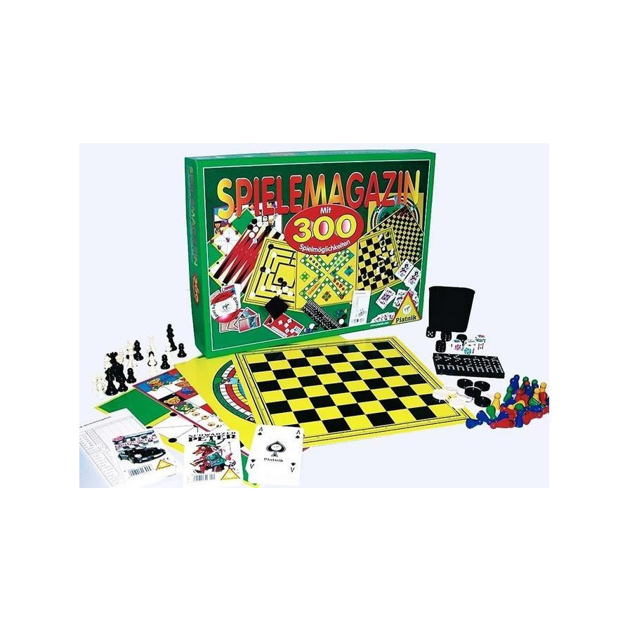 Dla wielu graczy, od 6 lat. W zestawie różnorodne gry: popularne ( np. domino, remik, chińczyk, makao, warcaby), z tradycjami ( m.in. szachy, pasjanse, backgammon, młynek, poker) i wiele oryginalnych ( Mistrzowski gobank, Podskarbi z szykaną, Maryśka z obrotem, Problem siedmiu hetmanów, Sznip-sznap-sznur i wiele innych). W komplecie rekwizyty do gier i instrukcja w języku polskim.